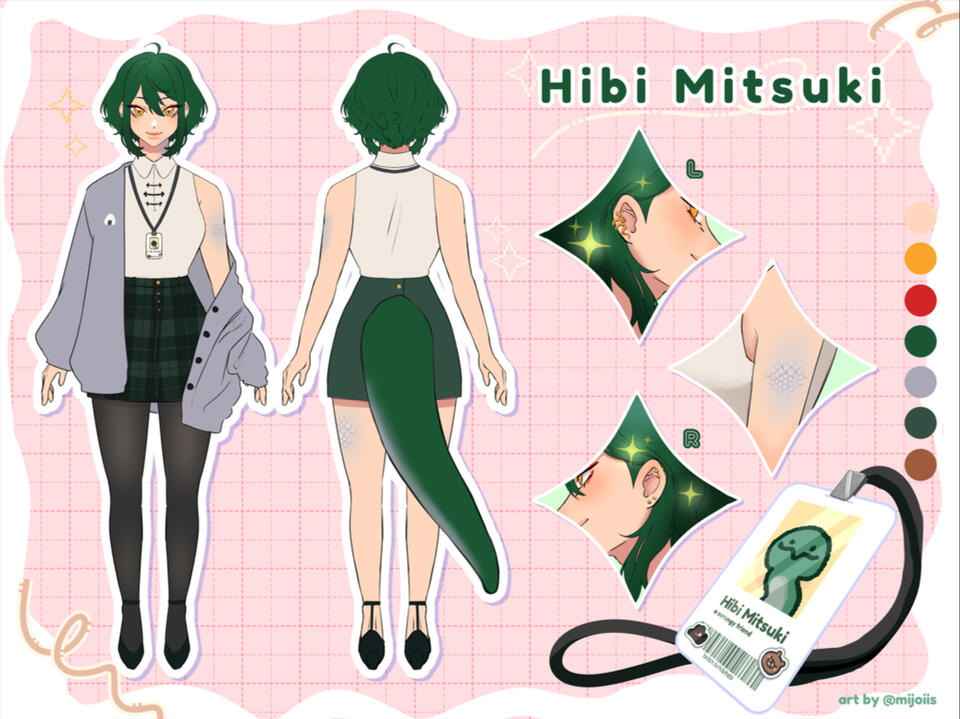 Hibi started streaming in April 2022 in search of meeting many friends on the wide vast world of the internet! They primarily stream a variety of games, such as visual novels and rpg's, along with their art and chatting alongside their close friends and listening to all sorts of music! They find the most comfort when others are comfortable in their streams, and want to create an atmosphere of hanging out with an old friend that you haven't seen in a very long time with drinks at your favorite izakaya.Goals that they want to achieve in their vtubing career are to be able to be confident enough to sing on stream and eventually release a cover one day, create cute merchandise and stationary for everyone to use, and show the world that snakes are silly little creatures that aren't just villainous as depicted in media!⟡ M I L E S T O N E S ⟡